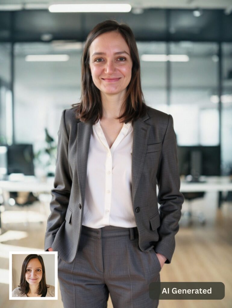 Upload a few selfie photos, and within minutes, you can generate a professional portraits.